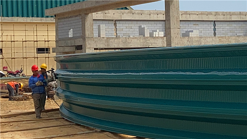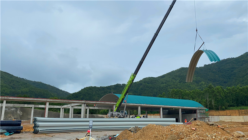 本項(xiàng)目采用跨度19至23米的拱形波紋鋼屋蓋結(jié)構(gòu)體系,使用厚度為1.2mm的高強(qiáng)度彩涂卷材,并通過914-610型設(shè)備進(jìn)行現(xiàn)場壓型及安裝。這種結(jié)構(gòu)具備良好的受力性能和排水能力,適用于大跨度、多單元的車庫建筑場景。