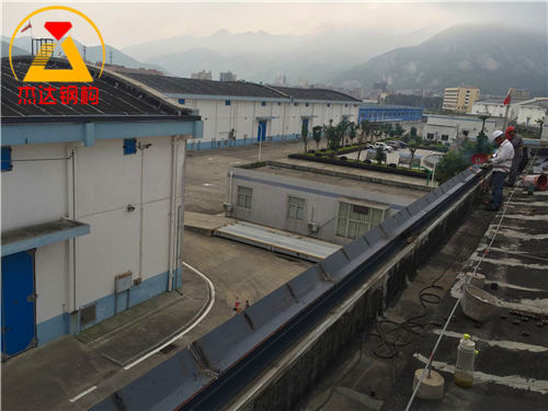 拱形屋頂下部的H鋼構(gòu)件在安裝時需要進(jìn)行拼接,以保證整體結(jié)構(gòu)的穩(wěn)定性和承載能力。拼接過程需嚴(yán)密對接,確保連接牢固,避免出現(xiàn)焊接缺陷。圖中所示為江蘇杰達(dá)鋼結(jié)構(gòu)工程有限公司在福建長樂直屬庫制作的16米跨度項目現(xiàn)場實拍,展示了H鋼的精準(zhǔn)拼接細(xì)節(jié)。