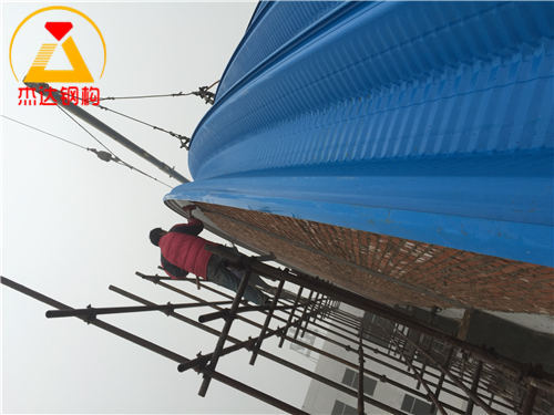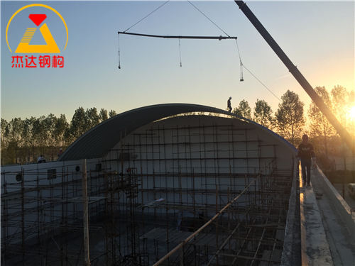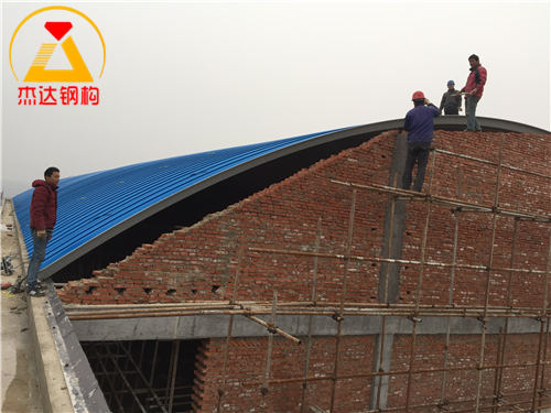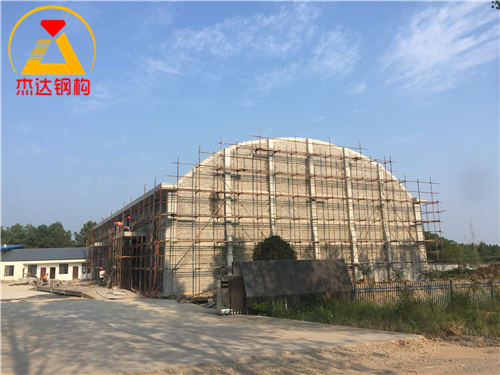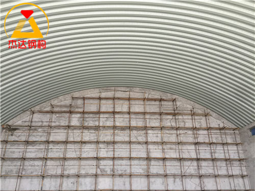 安徽桐城的糧食儲(chǔ)備庫同樣采用了拱形屋頂設(shè)計(jì),山墻結(jié)構(gòu)穩(wěn)固,施工時(shí)土建單位配合預(yù)留了足夠的拱高空間,確保了鋼結(jié)構(gòu)屋頂?shù)捻樌惭b。此類設(shè)計(jì)有利于糧食儲(chǔ)存環(huán)境的維護(hù)和結(jié)構(gòu)的耐久性。