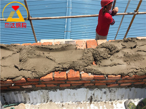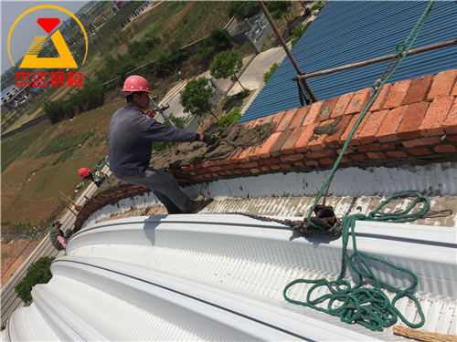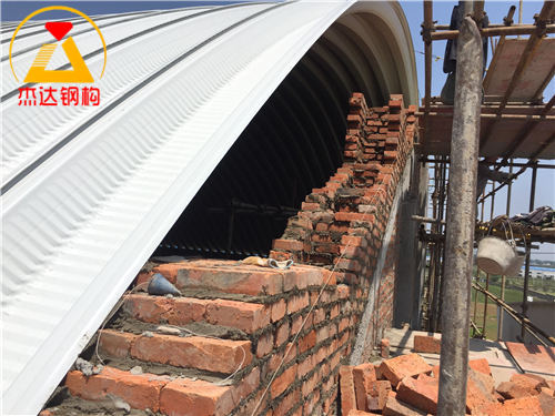 拱形屋頂?shù)拇u混結(jié)構(gòu)山墻施工需要土建施工單位和拱形屋頂施工單位的緊密配合。施工過程中,設(shè)計(jì)拱高尺寸由拱形屋頂施工方提供,土建單位據(jù)此預(yù)留足夠高度以便后續(xù)安裝,保障整體施工質(zhì)量與進(jìn)度。