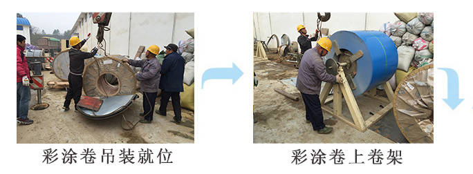 3.施工現(xiàn)場(chǎng)要在建筑旁留有一定空地(其面積視工程大小而定)作為放自動(dòng)滾壓機(jī)車拖車制作拱板和堆放成型后的拱板用地,當(dāng)屋面跨度較大時(shí)吊車設(shè)在室內(nèi)吊裝,因此施工要在山墻處留出入口。具體施工方案與土建施工單位協(xié)商確定。