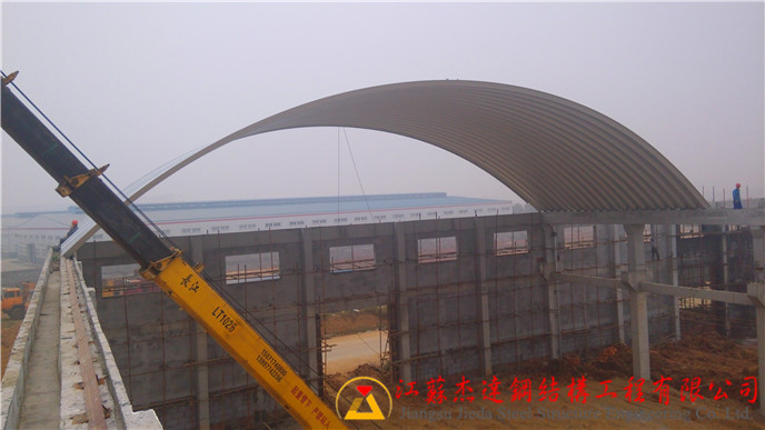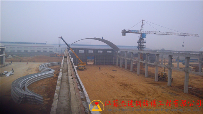 江蘇杰達鋼結(jié)構(gòu)工程有限公司專注于大跨度拱形屋頂?shù)氖┕?,跨度范圍?5米至38米之間,致力于打造結(jié)構(gòu)穩(wěn)固、設(shè)計合理的鋼結(jié)構(gòu)屋頂,滿足不同建筑需求。