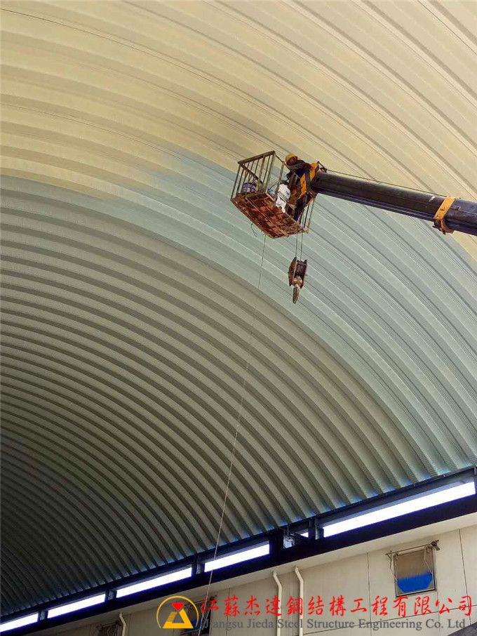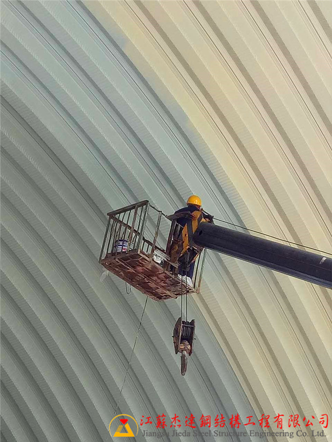 拱形屋頂因其結(jié)構(gòu)特點,在一些工業(yè)建筑中需要進行防腐處理以延長使用壽命。本文介紹了江蘇杰達鋼結(jié)構(gòu)工程有限公司在拱形屋頂背面噴涂防腐油漆的施工工藝及相關(guān)操作流程。