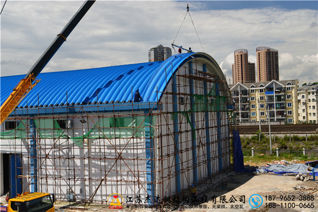 施工過(guò)程中,重點(diǎn)完成了吊裝拱形屋頂?shù)淖鳂I(yè),確保結(jié)構(gòu)定位準(zhǔn)確。下部結(jié)構(gòu)焊接包括天溝和托板,提升連接處的牢固性和耐久性。