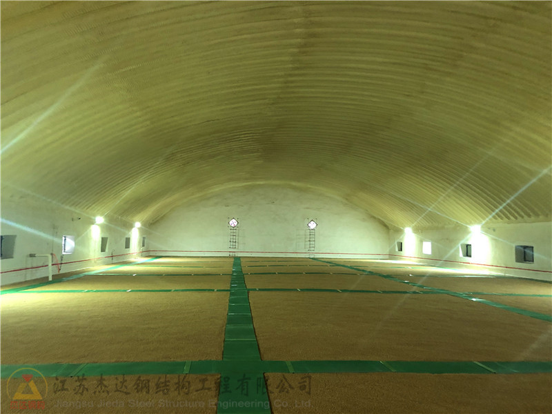 拱形結(jié)構(gòu)不僅有助于提升屋頂?shù)某休d性能,還能有效分散外界壓力,提升抗風(fēng)抗雪性能。此外,雙層瓦設(shè)計(jì)對(duì)防水和隔熱效果均有所改善,保障糧食儲(chǔ)備的安全環(huán)境。